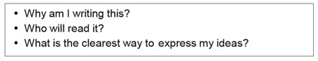 - Option A is correct because answering the questions will likely provide ELLs with ways to ensure that their writing is clear and targeting the right audience. Options B, C and D are incorrect because the questions are not associated with adjustment of reading level (option B), assessing writing progress over time (option C) or correct writing conventions (option D).